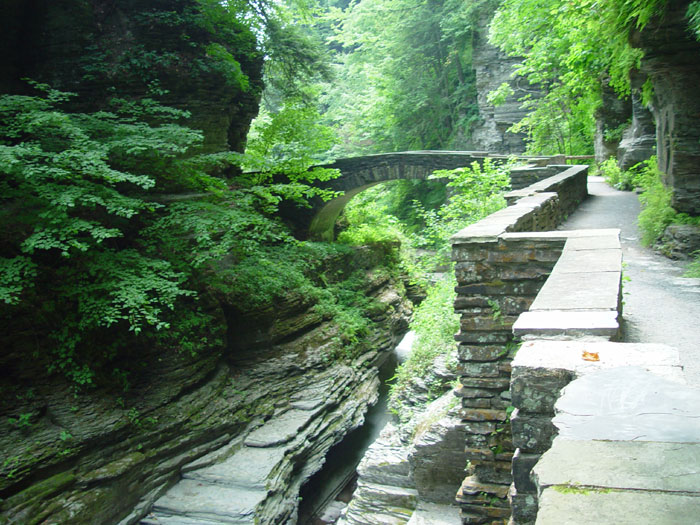 Robert H. Treman State Park is an area of wild beauty, with the rugged gorge called Enfield Glen as its scenic highlight. Winding trails follow the gorge past 12 waterfalls, including the 115-foot Lucifer Falls, to where visitors can see a mile-and-a-half down the wooded gorge as it winds its way to the lower park.