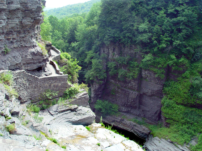 Robert H. Treman State Park is an area of wild beauty, with the rugged gorge called Enfield Glen as its scenic highlight. Winding trails follow the gorge past 12 waterfalls, including the 115-foot Lucifer Falls, to where visitors can see a mile-and-a-half down the wooded gorge as it winds its way to the lower park.